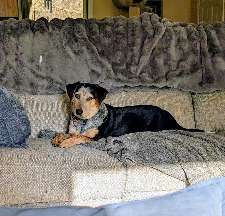 He is currently being trained by our foster volunteer, Monica Rivera of Dog Training by Monica. Monica describes Barkley as very smart and a quick learner. While he is high-energy and would be a great fit for an active family, he also enjoys cuddling on the couch.