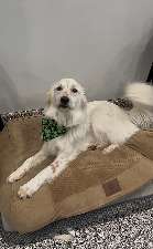 Sinnett (aka Marshmallow) is a 1.5 yr old Pyrenees mix. He has a beautiful soft coat. He loves attention and has nice manners. He is house trained, crate trained, and knows some basic commands. Sinnett enjoys playing with other young playful dogs.